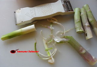 - Lavar os aspargos. Dobra-los na mão para ver onde se quebra naturalmente. A parte de baixo tende a ser dura e então deve ser descascada. Caso os aspargos sejam finos não há necessidade de descascar pois a casca não será rija.