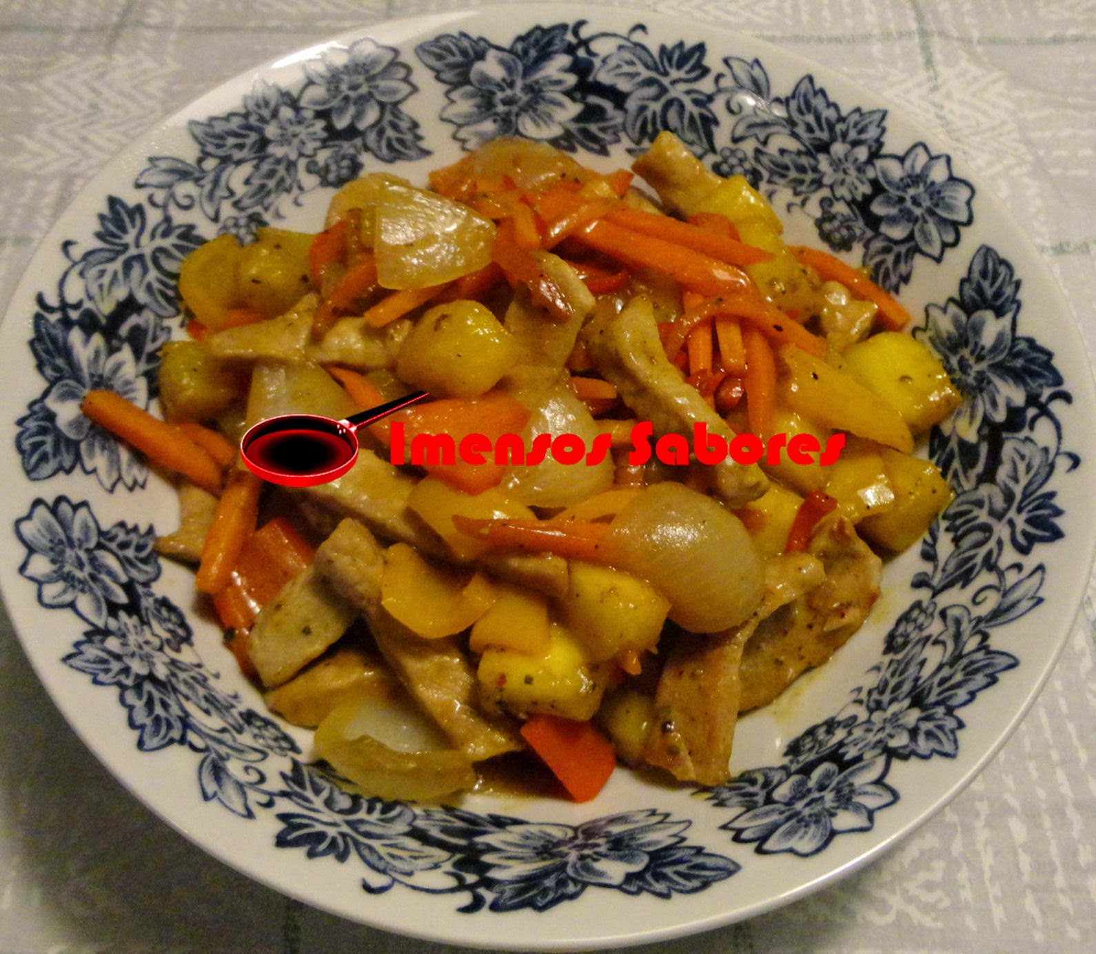 - Aquecer o azeite numa panela wok, ou em uma panela grande e juntar o porco, saltear em chama alta até dourar. A seguir juntar o alho e refogar por uns segundos. Juntar então a cebola e a malagueta e refogar por cerca de 1 a 2 minutos. Acrescentar então a cenoura, os mini pimentos, o açúcar, pimenta do reino e molho de soja. Saltear por cerca de 2 a 3 minutos. Juntar a água e quando ferver baixar a chama. Temperar com pitada de chili. Diluir o amido de milho em água fria e juntar a panela, misturar e cozinhar em fogo baixo mexendo sempre por no mínimo 4 minutos. Servir acompanhando de arroz branco.