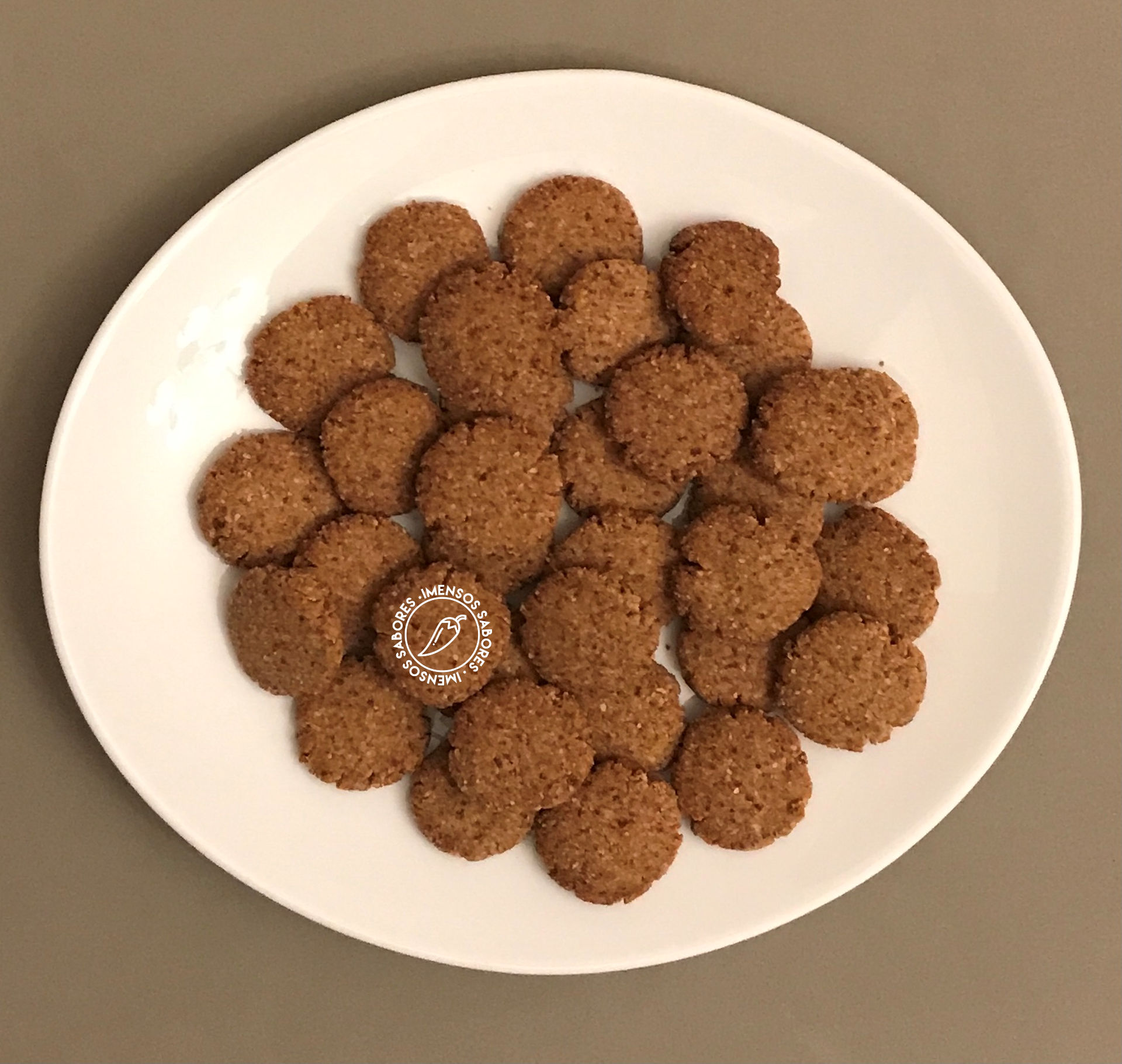 - Forrar um tabuleiro com papel vegetal. Fazer bolinhas e achatar e colocar no tabuleiro.