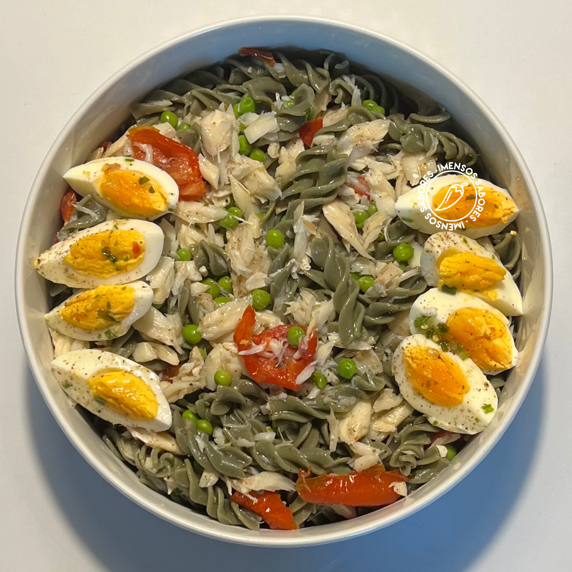 - 140 gramas de massa seca em espirais com algas e espirulina – ou usar outra massa que preferir